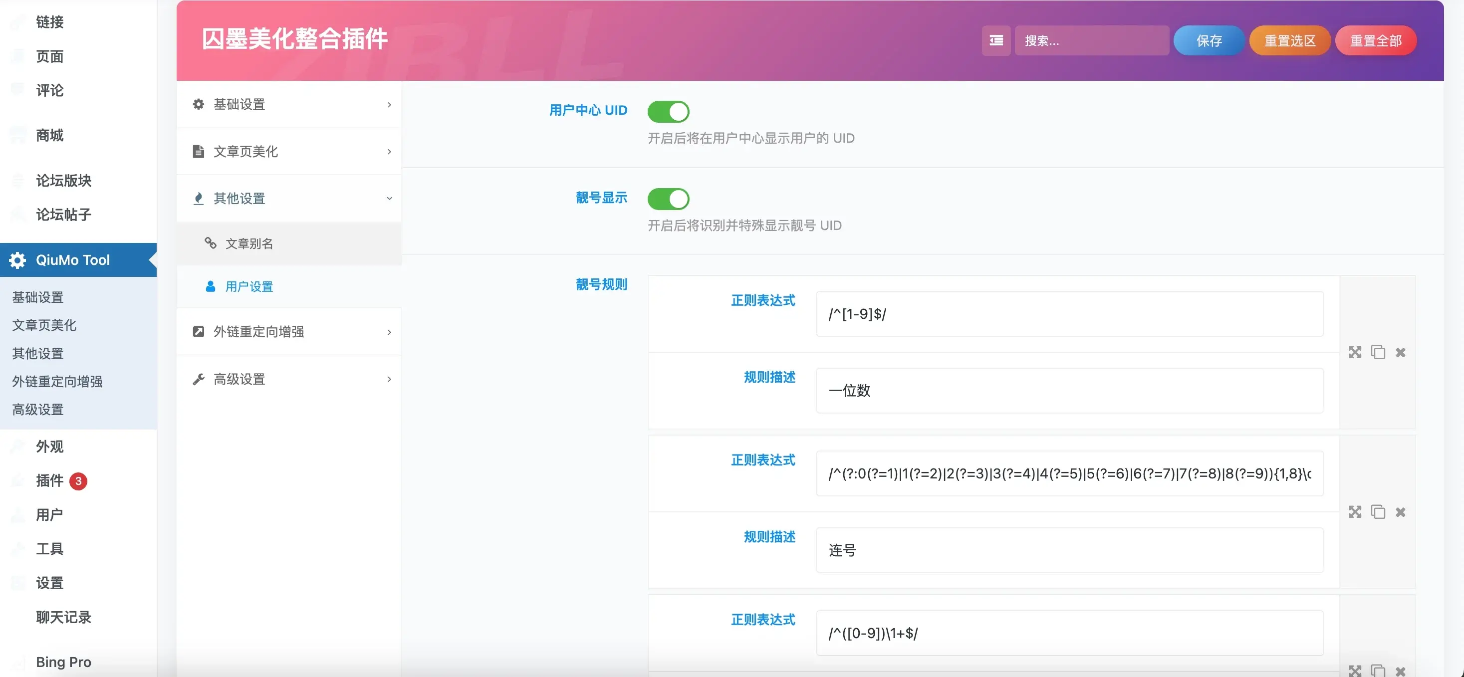 茉莉小栈 2025年12月12日 字数:68,阅读约1分钟 全屏显示 子比插件 – 囚墨美化插件 分类: 模板插件 浏览: 135 发布: 2025年12月12日 更新: 2025年12月12日 免费资源,请尊重版权所有。 请先登录 一言准备中... 这是一款子比主题的囚墨美化插件,这款插件是全开源无加密的,功能大家正常的话也可以用得上,有顶部信息、靓号等等功能,喜欢的自行部署吧!图片 子比主题 插件 声明 茉莉小栈用须知 1本网站内容仅供个人学习、研究和欣赏,未经授权禁止用于任何商业用途。 2网站中的代码示例仅用于教育目的,使用时请遵循相关开源协议和授权规定。 3转载或引用本站内容请注明出处,尊重原创,共同维护良好的创作环境。 4网站评论区欢迎理性讨论,请勿发表违反法律法规的言论,共建和谐社区。 5如有内容侵犯您的权益,请通过博客联系方式告知,将立即核实并处理。 6使用本站资源时产生的任何问题与后果需自行承担,请谨慎操作。 文章很赞!支持一下吧 还没有人为TA充电 为TA充电 还没有人为TA充电 00子比插件 – 囚墨美化插件海报分享QQ分享QQ空间微博分享复制链接 支付宝扫一扫 微信扫一扫 感谢支持 文章很赞!支持一下吧