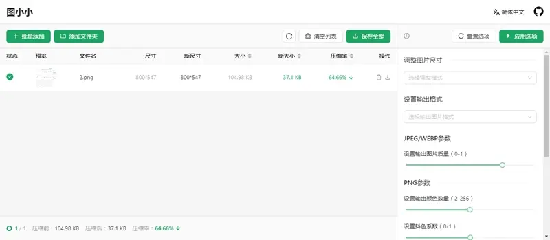 自动压缩:上传图片后,图小小会自动进行压缩处理,并提供详细的结果信息。