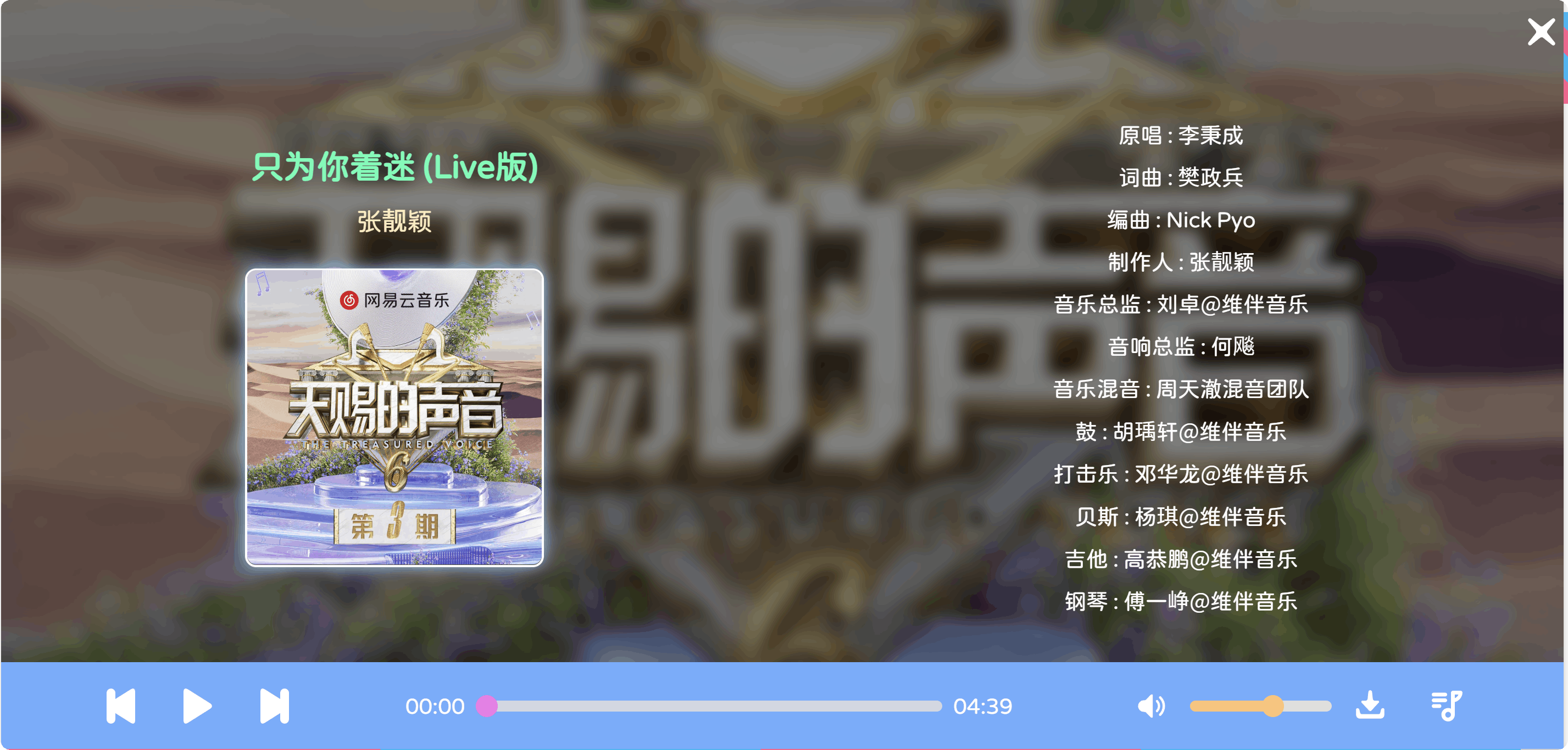 茉莉小栈 2025年11月6日 字数:209,阅读约1分钟 全屏显示 子比主题美化-思幻音乐播放器代码版 子比美化 27 0 1 一言准备中... 教程放到后台-自定义代码-自定义HTML底部此处内容已隐藏,请评论后刷新页面查看去评论 子比主题 子比美化 本站收集的资源仅供内部学习研究软件设计思想和原理使用,学习研究后请自觉删除,请勿传播,因未及时删除所造成的任何后果责任自负。 如果用于其他用途,请购买正版支持作者,谢谢!若您认为「茉莉小栈」发布的内容若侵犯到您的权益,请联系站长邮箱: 858585857@qq.com 进行删除处理。 本站资源大多存储在云盘,如发现链接失效,请联系我们,我们会第一时间更新。 文章很赞!支持一下吧 还没有人为TA充电 为TA充电 还没有人为TA充电 00子比主题美化-思幻音乐播放器代码版海报分享QQ分享QQ空间微博分享复制链接 支付宝扫一扫 微信扫一扫 感谢支持 文章很赞!支持一下吧