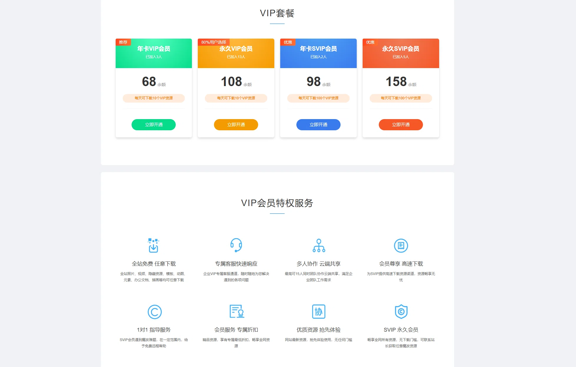这是一款子比主题的VIP权益页面,这个页面是直接调用的子比主题的会员弹窗